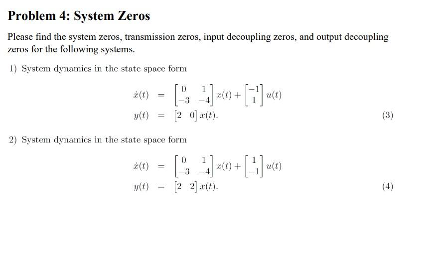 Solved Please find the system zeros, transmission zeros,
